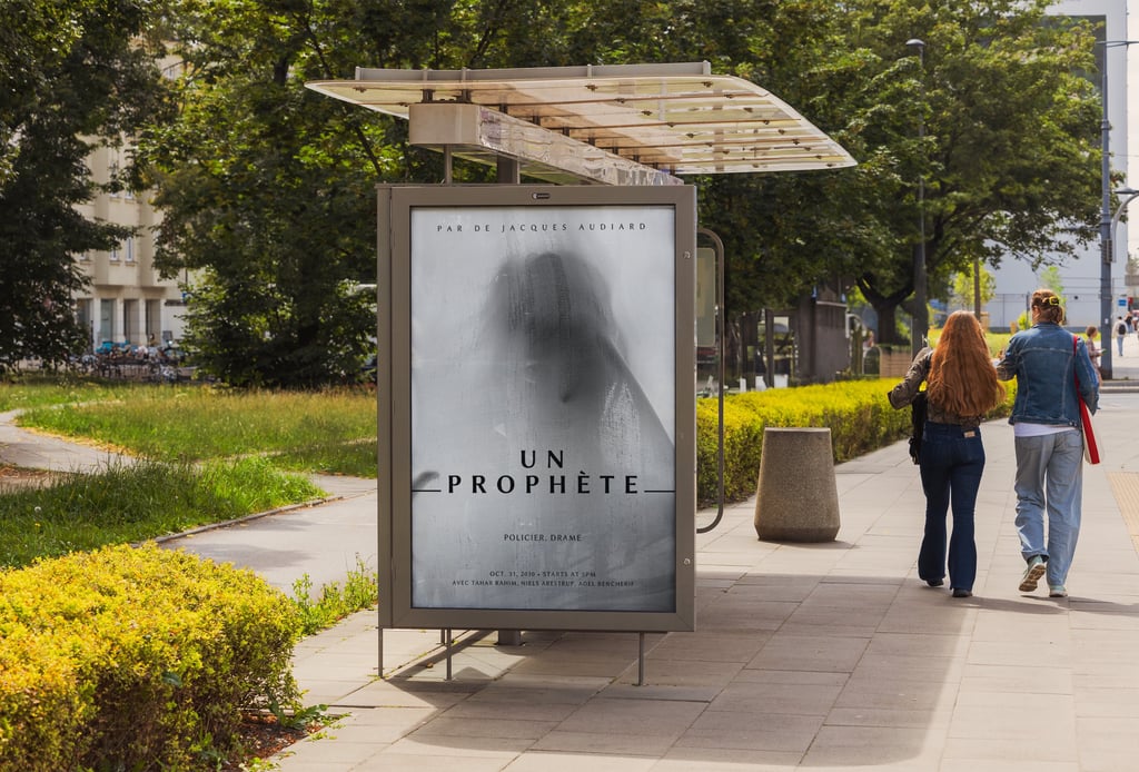 Cette création rend hommage à l’atmosphère du film de Jacques Audiard : froide, silencieuse et chargée de tension. L’image floue suggère l’enfermement et la perte d’identité, tandis que la typographie épurée donne au titre toute sa force prophétique.